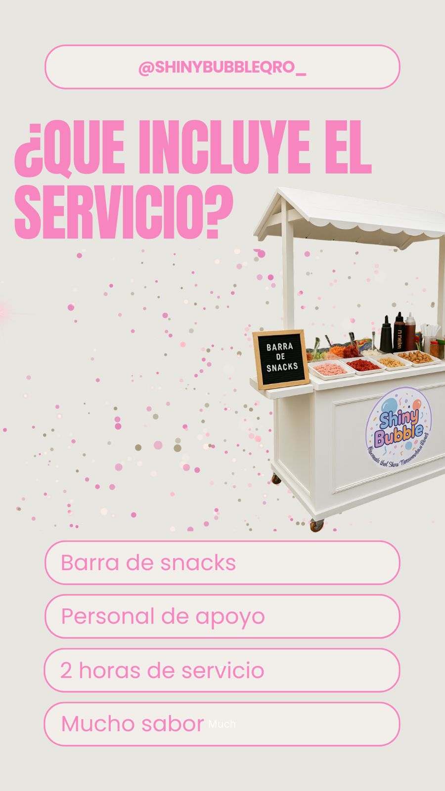 En Shiny Bubble creemos que cada celebración merece brillar. Nuestro eslogan “Momentos que brillan, memorias que flotan” refleja nuestra misión: llevar sabor, alegría y experiencias memorables a cada evento.