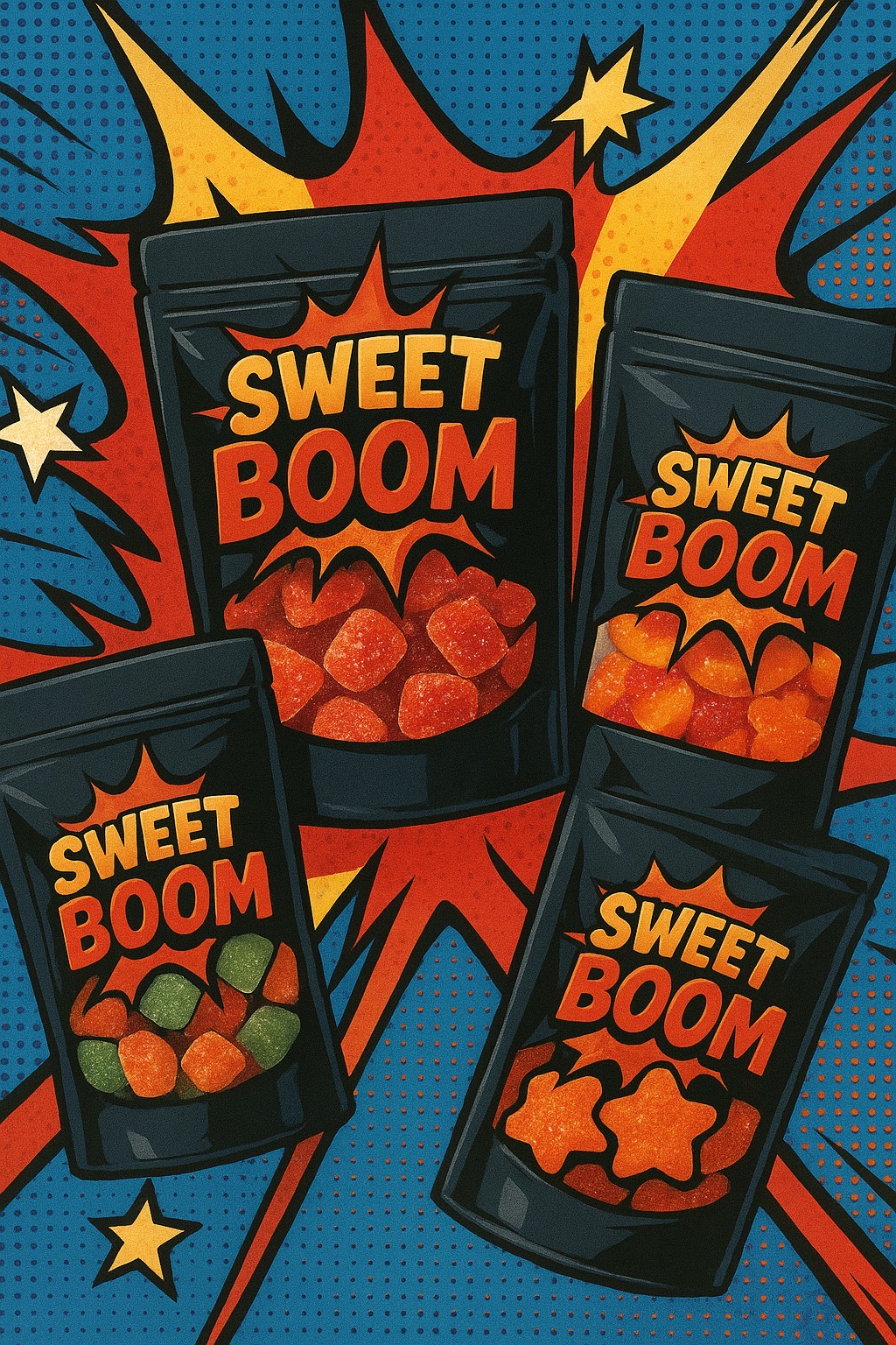 En Sweet Boom transformamos las gomitas tradicionales en una experiencia única. Con el equilibrio perfecto entre dulce, salado y picante, cada pieza es una explosión de sabor que te sorprenderá. Un concepto innovador de gomitas enchiladas con el mejor mix de sabores: dulces, saladas y picantes. Ven y descubre por qué somos el boom de lo dulce.